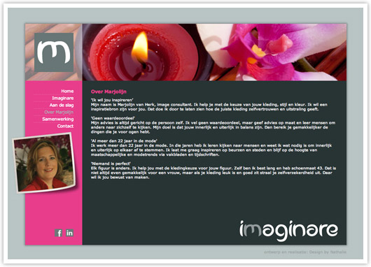 Marjolijn van Herk benaderde Nathalie voor het ontwikkelen van een huisstijl die de veelzijdigheid van haar diensten naar haar klanten communiceert. Design by Nathalie heeft vervolgens een stijl ontwikkeld waarbij de structuur van kleding gemengd met oosterse invloeden centraal staat. Dit artwork is omgezet naar een heldere website en verschillende soorten drukwerk. |
